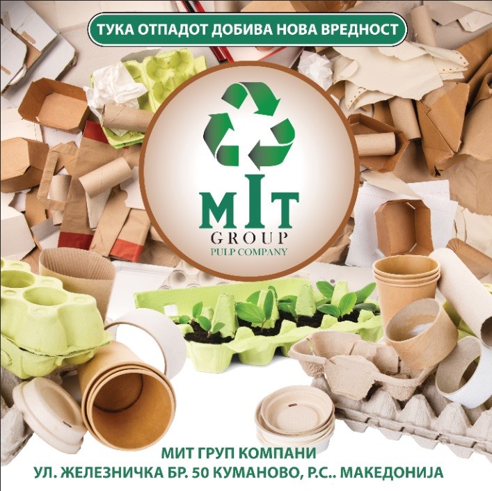 МИТ ГРУП КОМПАНИ е компанија чија што основна дејност е рециклирање на хартија и картон, нејзина преработка и производство на подлошки за јајца и други производи од хартија и картон. Нашето производство се базира на рециклирање на стара хартија и картон , при што се добива смеса наречена пулпа ,од којашто понатаму добиваме разни производи од таа смеса. Главно произведуваме подлошки за јајца со различни големини и тоа подлошки за јајца со големина М/30 , Л/30 , ХЛ/30 и мали пакувања за по 10 јајца и 2х6 јајца.